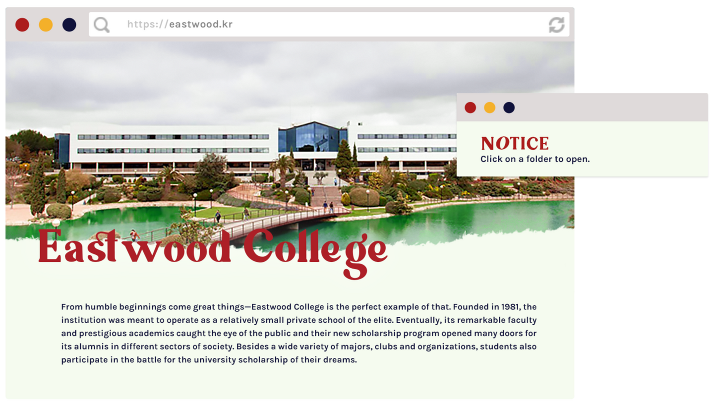 Eastwood College is a secular international private college situated in Seoul, South Korea offering a high caliber curriculum in an English and Korean language setting. When it first opened in 1981, it was considered a small college based on its number of students. The tuition may have been high but it was undeniably worth it, considering how most graduates continued their studies at university with ease. What was initially a school exclusively for the elite soon opened its doors to people of all financial and social backgrounds thanks to the continuous donations of wealthy patrons. Students who come from such backgrounds are considered scholars, as they enrolled with the help of a scholarship, and are joined by the elites, whose families continue to support the college financially.